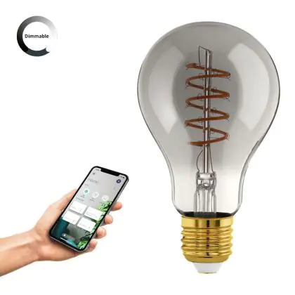 Die Eglo Connect.Z Smart LED Birne E27 Fadenlampe Smokey 4W 150lm - 820 Extra Warmweiß | Dimmbar - Ersatz Für 15W ist eine effiziente E27 LED-Lampe mit Retrodesign und der perfekte Ersatz für Ihre konventionellen 15W Lampen mit E27. Zudem strahlt sie Licht in der Farbtemperatur 2000K - Extra Warmweiß aus und punktet durch eine lange Lebensdauer.