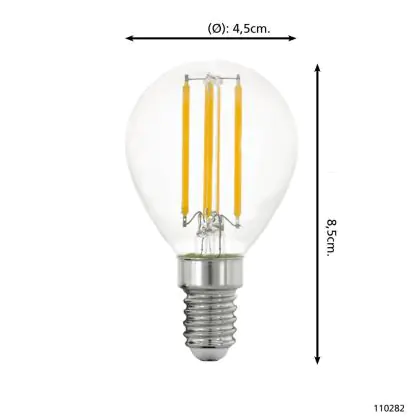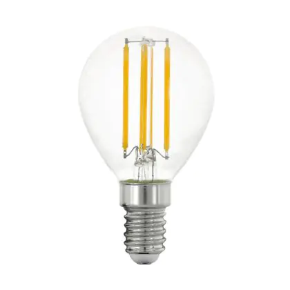 Die Eglo LED Kugel E14 Fadenlampe Klar 2.2W 470lm - 830 Warmweiß | Ersatz Für 40W ist eine effiziente E14 LED-Lampe mit Retrodesign und der perfekte Ersatz für Ihre konventionellen 40W Lampen mit E14. Zudem strahlt sie Licht in der Farbtemperatur 3000K - Warmweiß aus und punktet durch eine lange Lebensdauer.