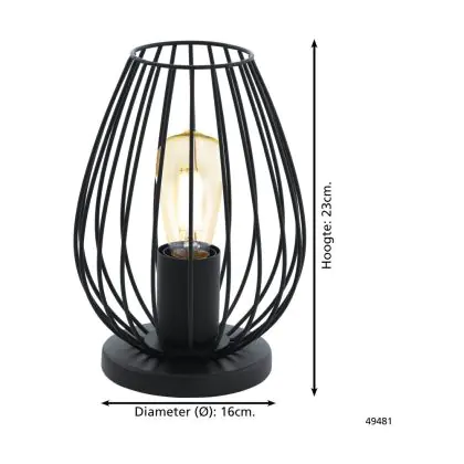 Eglo Tischlampe Newtown Stahl Schwarz | IP20 - Geeignet für 1x E27