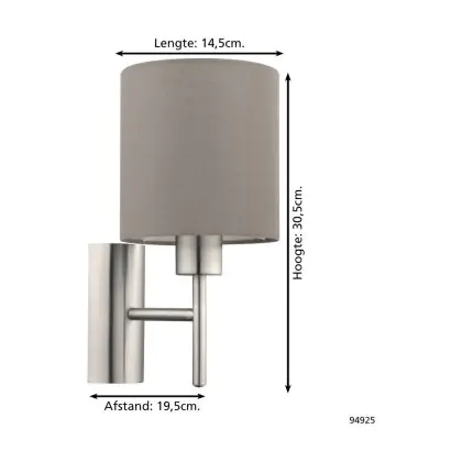 Beschreibung Eglo Wandleuchte Pasteri Stahl Satin-Nickel | IP20 - Geeignet für 1x E27