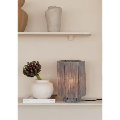 Good&Mojo Tischlampe Panama Raffia Grau L | Geeignet für 1x E27