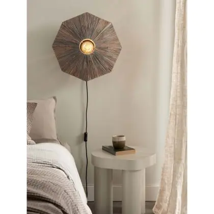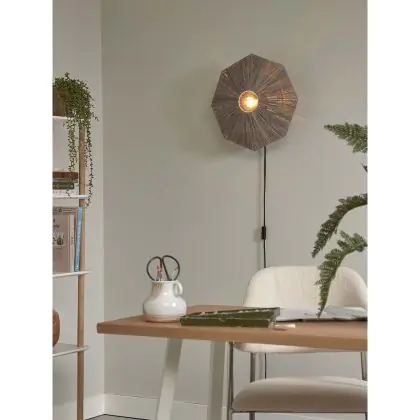 Beschreibung Good&Mojo Wandleuchte Panama Raffia Grau | Geeignet für 1x E27