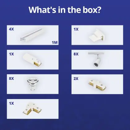 | Herstellername | Complete L shaped 1-Phase Track Set White incl. 8x Spot fixture + GU10 2700K 3W Dim – 2 x 2 meters i | |