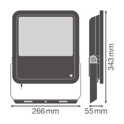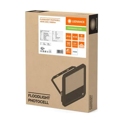 Beschreibung Ledvance Led-Scheinwerfer Aluminium Schwarz 100W 15000lm 100D - 840 Kaltweiß | IP66 - Lichtsensor - Symmetrisch