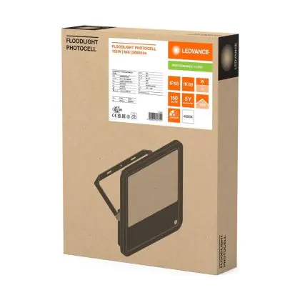 Beschreibung Ledvance Led-Scheinwerfer Aluminium Schwarz 133W 20000lm 100D - 840 Kaltweiß | IP66 - Lichtsensor - Symmetrisch
