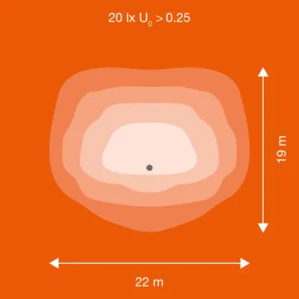 Diese LED-Straßenbeleuchtung strahlt Licht mit einer extra warmweißen Farbtemperatur von 2.700 Kelvin ab. Diese Lichtfarbe mit einem sehr hohen Rotanteil ist dafür vorgesehen, eine angenehme Atmosphäre zu kreieren.