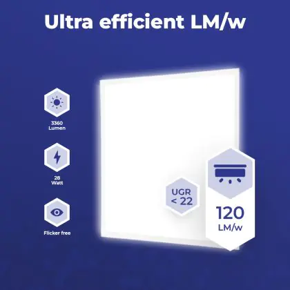 Aufgrund des geringen Energieverbrauchs von nur 28W sparen Sie mit dem LED-Panel von Noxion bis zu 90 % Ihrer Energie - sowie Instandhaltungskosten gegenüber einer konventionellen Leuchte.