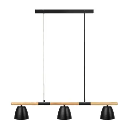 Nordlux Theo 3-Rail Pendelleuchte Metall und Holz Schwarz | Geeignet für 3x GU10